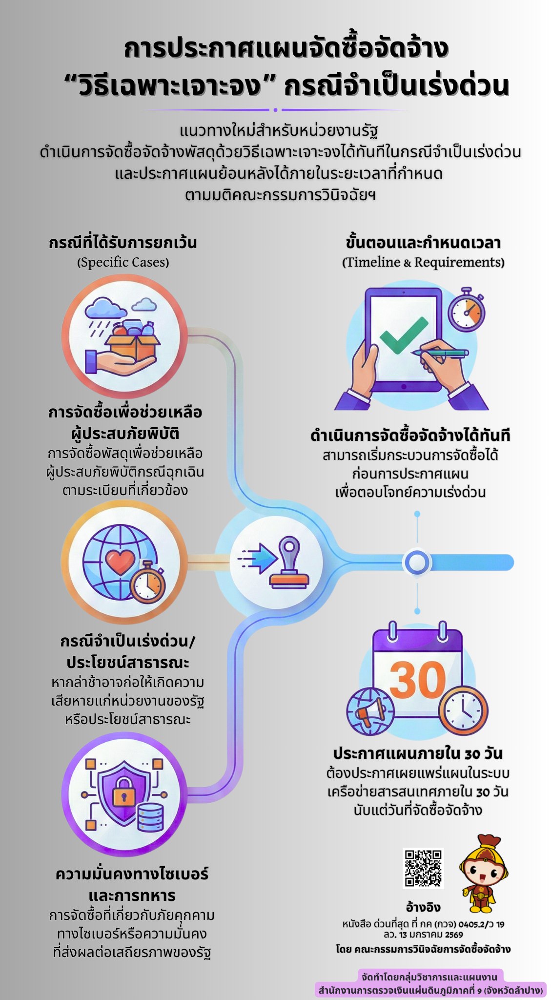 แนวทางใหม่สำหรับหน่วยงานรัฐ ในการดำเนินการจัดซื้อจัดจ้างพัสดุด้วยวิธีเฉพาะเจาะจงได้ทันที กรณีมีความจำเป็นเร่งด่วนและประกาศเผยแพร่แผนการจัดซื้อจัดจ้างย้อนหลังได้ภายในระยะเวลาที่กำหนดข่าวประชาสัมพันธ์, บทความ/เอกสารเผยแพร่มกราคม 19, 2026มกราคม 19, 2026 Post Views: 23